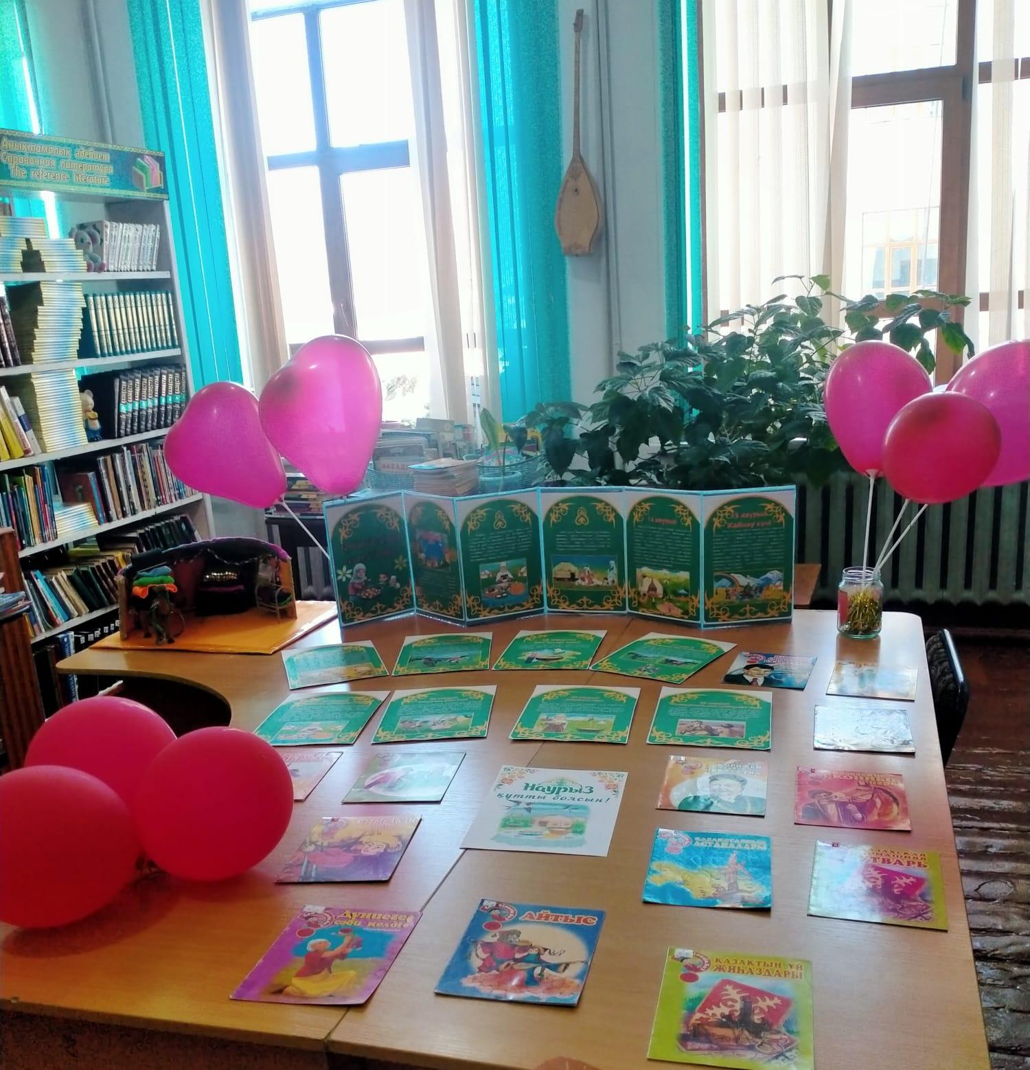 В дни празднования весеннего праздника Наурыз библиотека подготовила для своих читателей интересную книжную выставку «Наурыз мейрамы құтты болсын!»