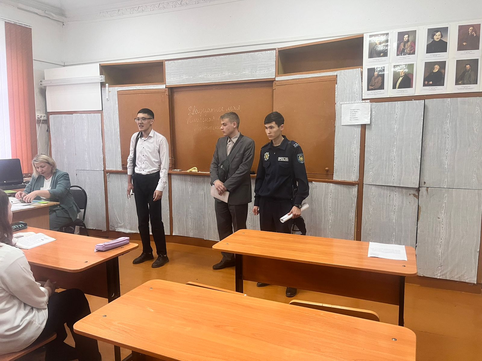 20.05.2025 года в рамках акции «Внимание Дети!» и профилактики уголовных, административных правонарушений среди несовершеннолетних проведены беседы участковым инспектором по делам несовершеннолетних лейтенантом полиции Баймухамбетовым Ералы Фархатулы среди учащихся 6в, 7в, 7ә классов на тему : «ПДД», «Мелкое хулиганство» , «О запрете употребления табачных изделий», «О запрете нахождения в общественных местах в ночное время с 23.00 до 06.00»